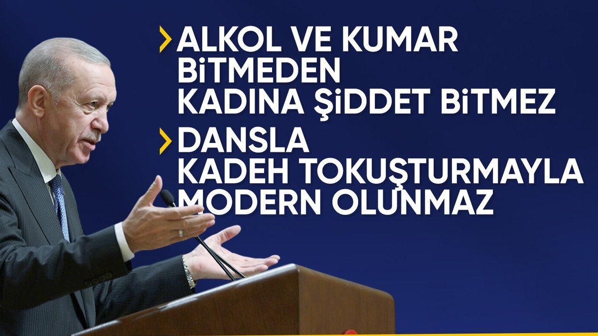 Cumhurbaşkanı Erdoğan daha sonra alkol ve kumar bağımlılığının önüne geçmedikçe kadına yönelik şiddetin önlenemeyeceğini belirtti.