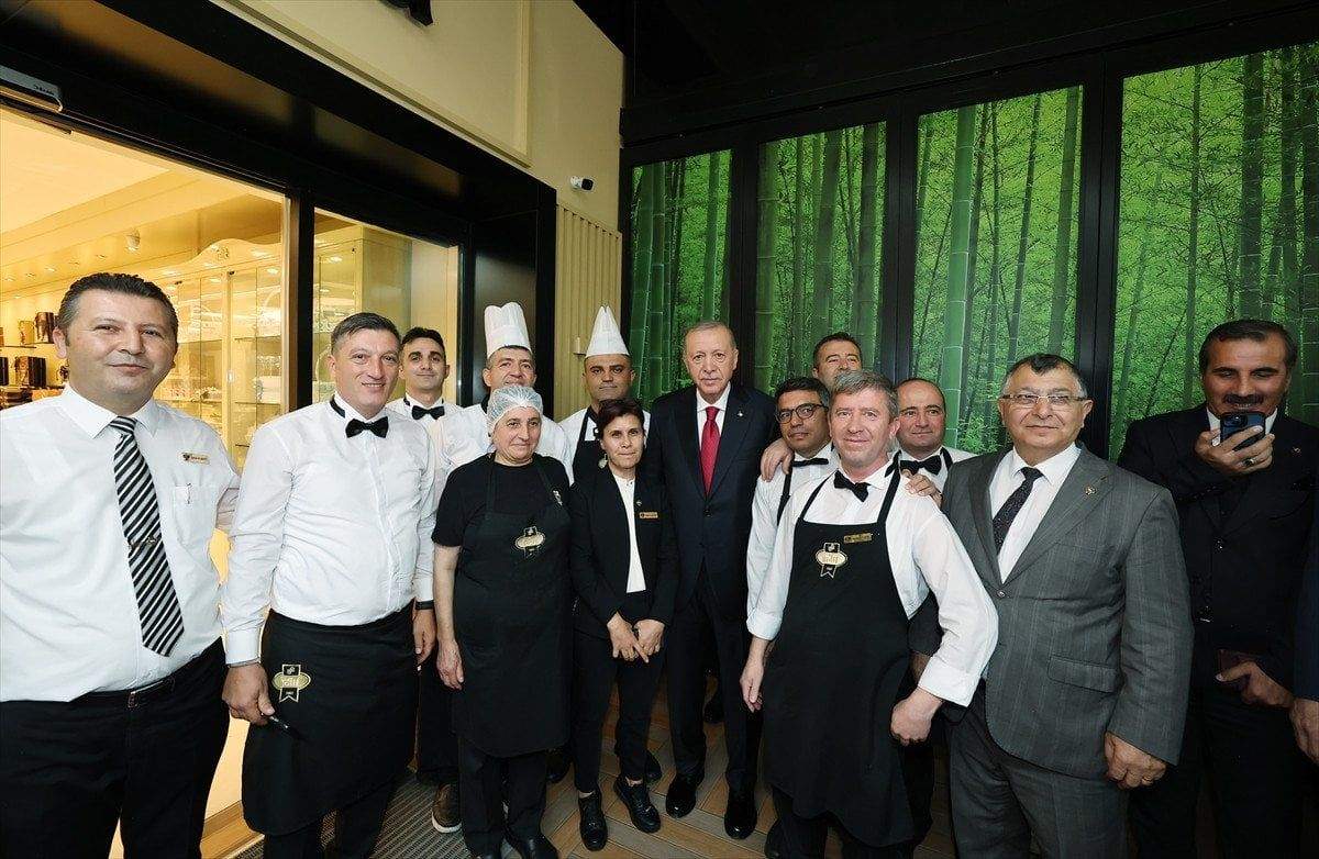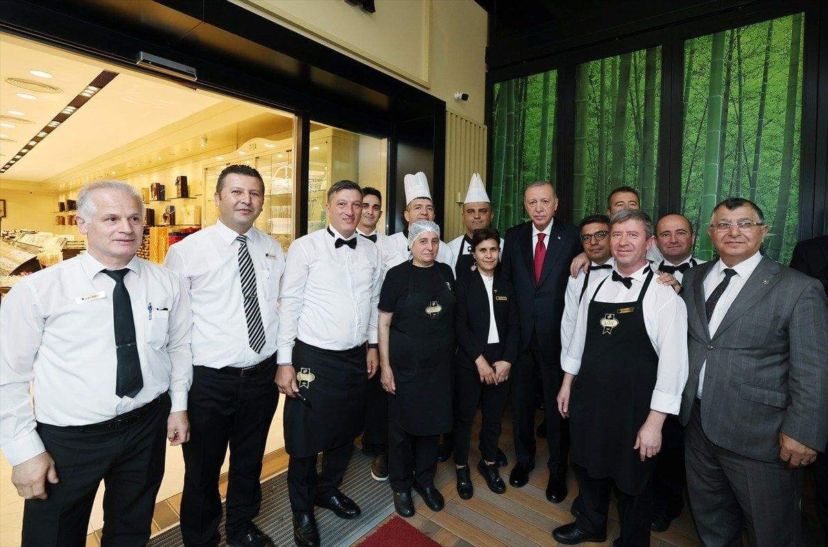 Cumhurbaşkanı Recep Tayyip Erdoğan, Ankara’da bir pastaneyi ziyaret ederek vatandaşlarla sohbet etti, fotoğraf çektirdi.