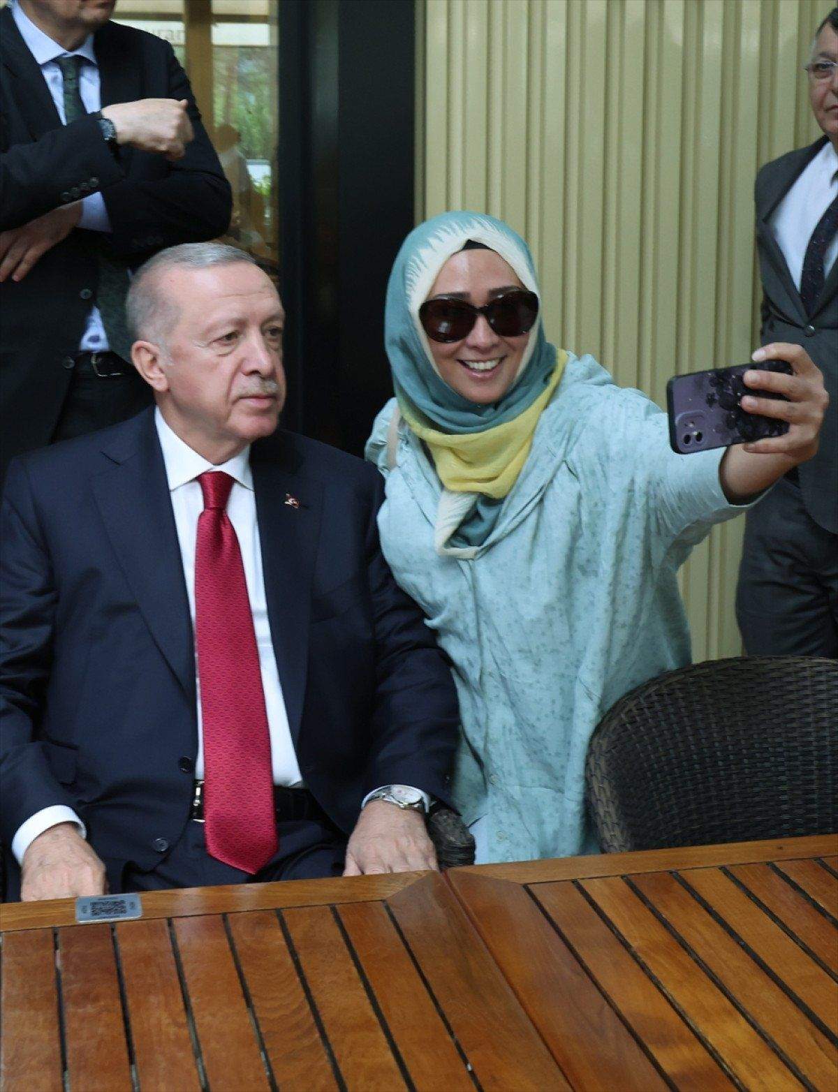 Cumhurbaşkanı Erdoğan’ı karşılarında gören ve sevinen vatandaşlar, fotoğraf çektirmek için sıraya girdi.