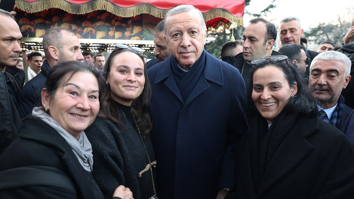 Burada vatandaşların sevgi gösterisiyle karşılanan Erdoğan, onlarla sohbet etti, hatıra fotoğrafı çektirdi.
