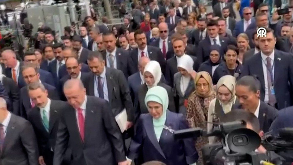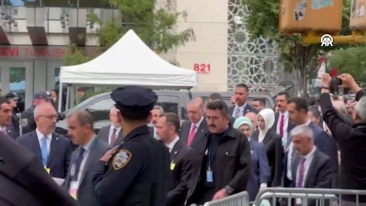 Erdoğan, eşi Emine Erdoğan ve beraberindekiler, Türkevi’nin karşısında bulunan BM binasına yürüdü.