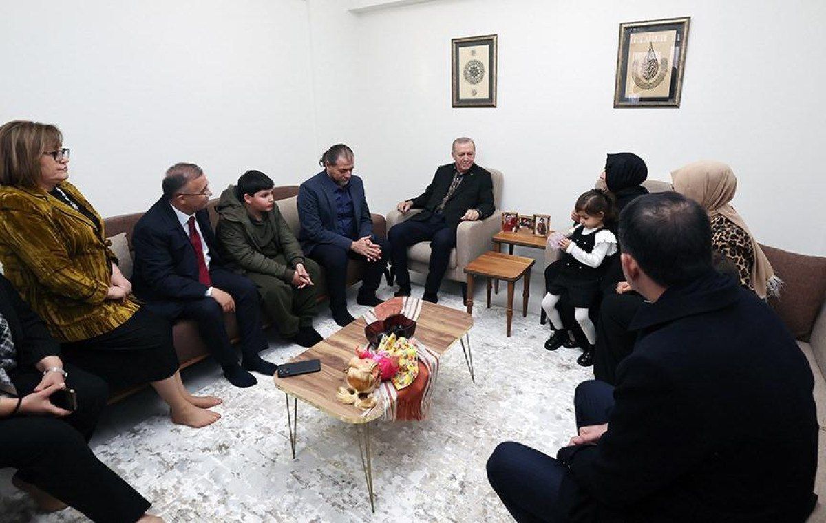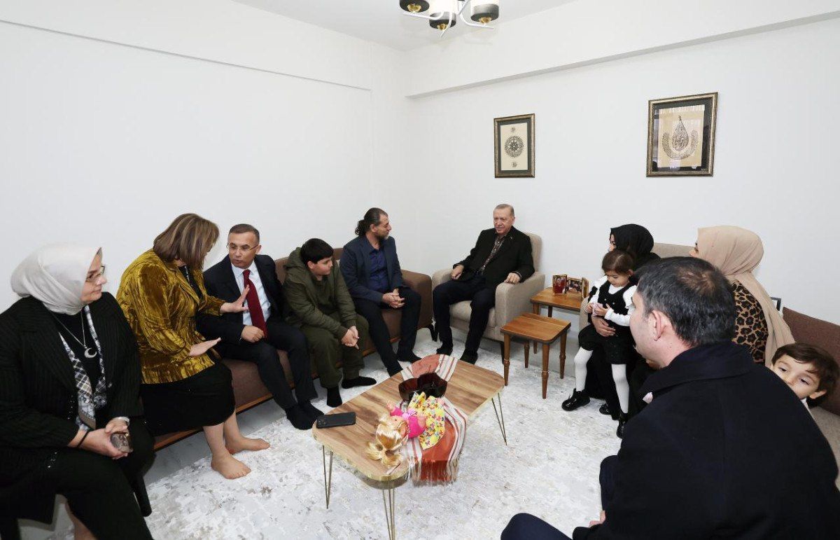 Gaziantep’te 5 bin 113 konut anahtar ve tapu teslim törenine katılan Cumhurbaşkanı Recep Tayyip Erdoğan, tören sonrası depremde hafız 2 çocuğunu kaybeden depremzede ailenin evine misafir oldu.