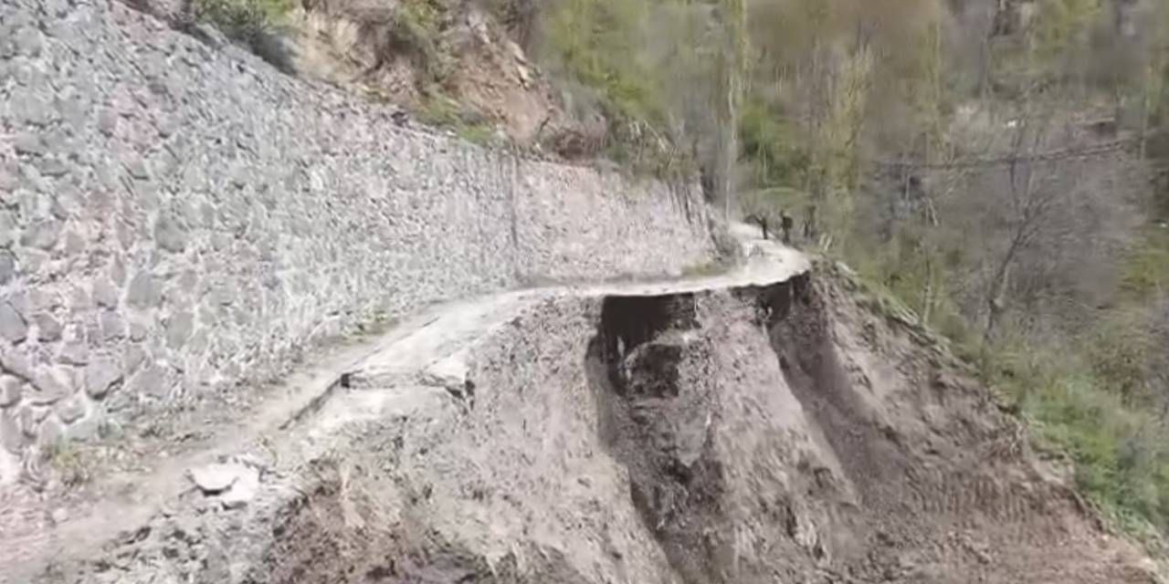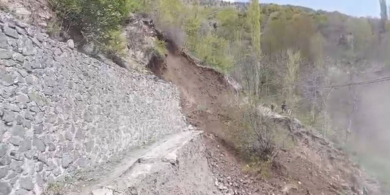 Görüntüde; heyelanla yol güzergahındaki taş duvarın büyük bir gürültüyle yıkıldığı, yamaçtan hızla kopan toprağın sürüklendiği, çevreyi ise toz bulutu kapladığı yer aldı.