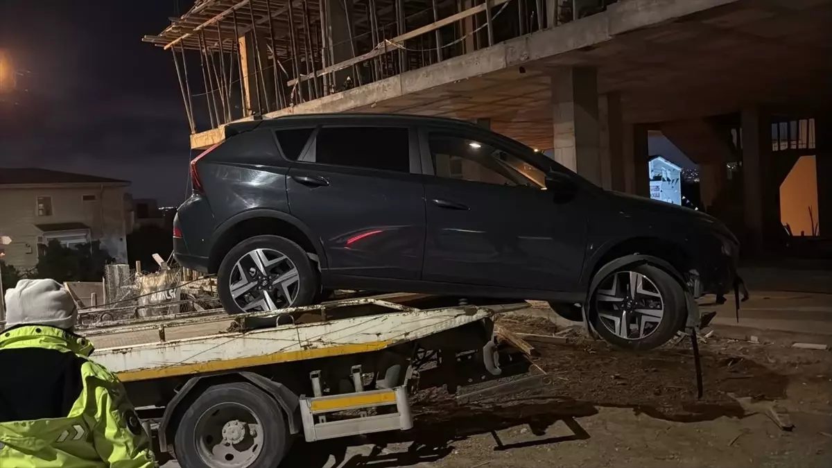 Darıca’da Otomobil İnşaat Sahasında Asılı Kaldı