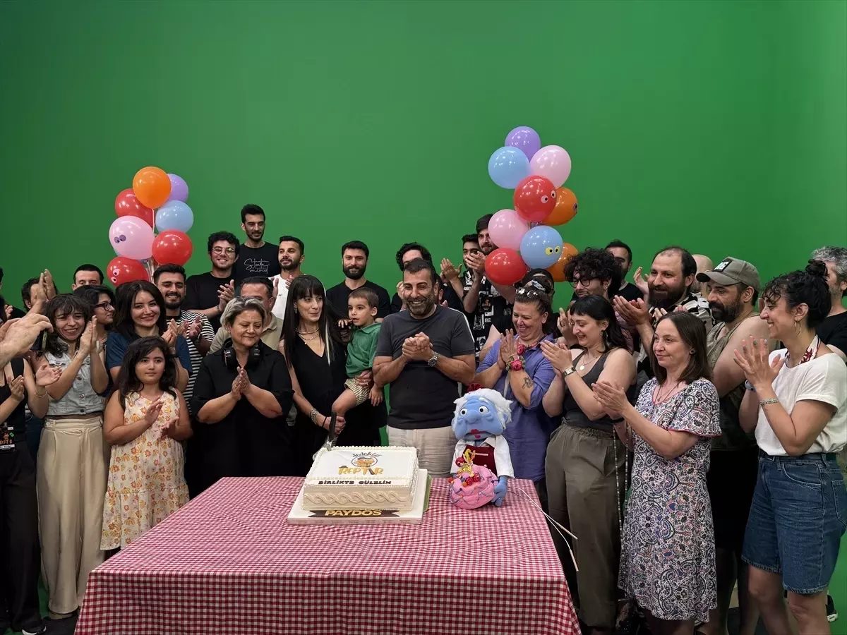 Çekimlerin tamamlanması dolayısıyla tüm ekip pasta keserek kutlama yaptı.