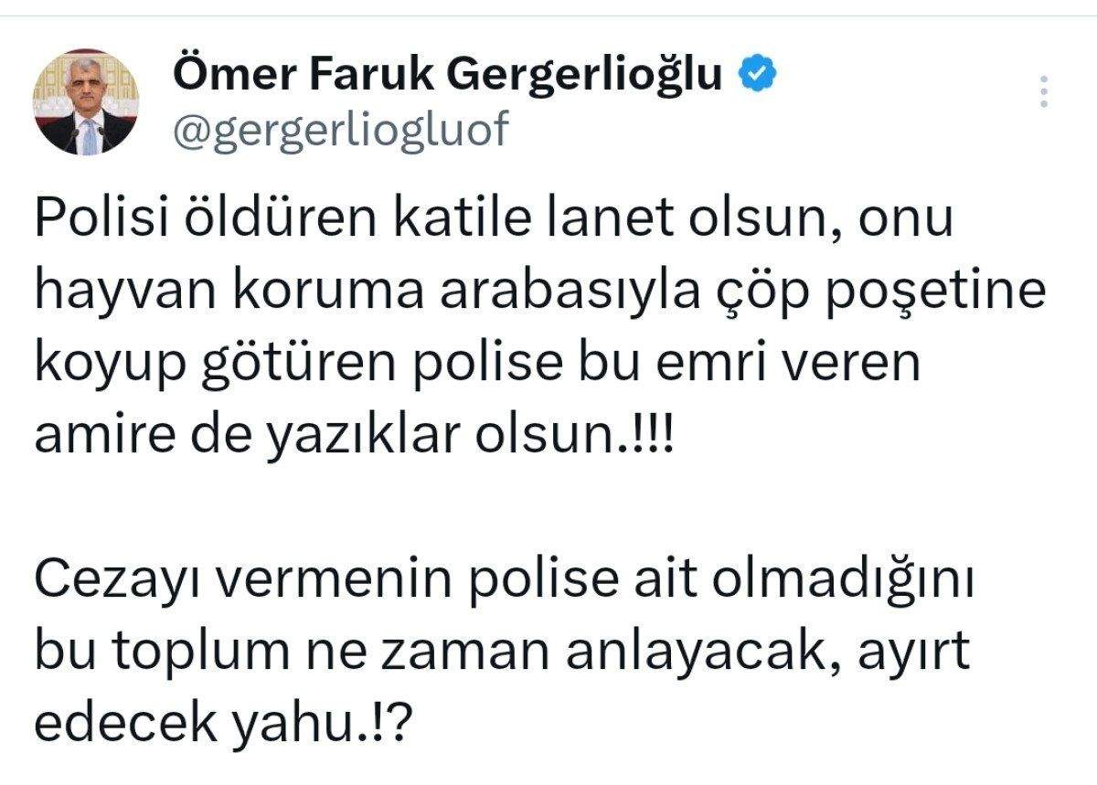 DEM Parti milletvekili Ömer Faruk Gergerlioğlu, polisi şehit eden zanlının bu şekilde muamele görmesine tepki gösterdi.