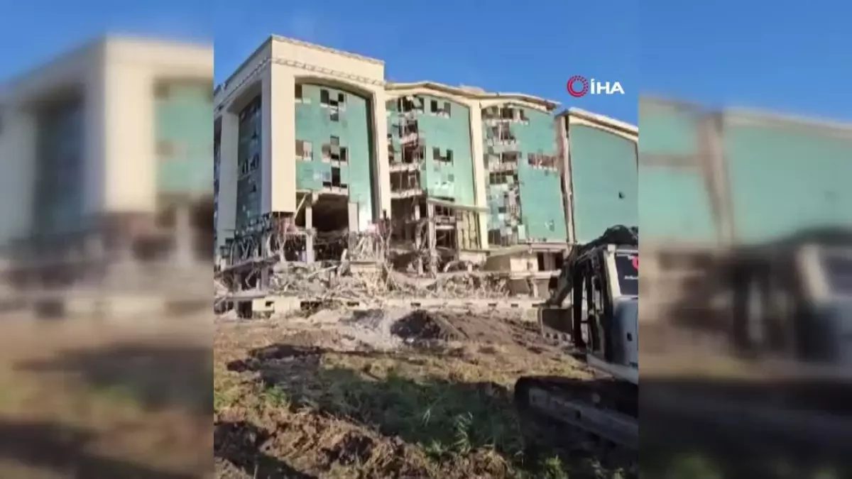 HATAY – Hatay’ın Antakya ilçesinde 10 katlı iş merkezinin iş makinesiyle kontrollü olarak yıkıldığı anlar kameraya yansıdı.