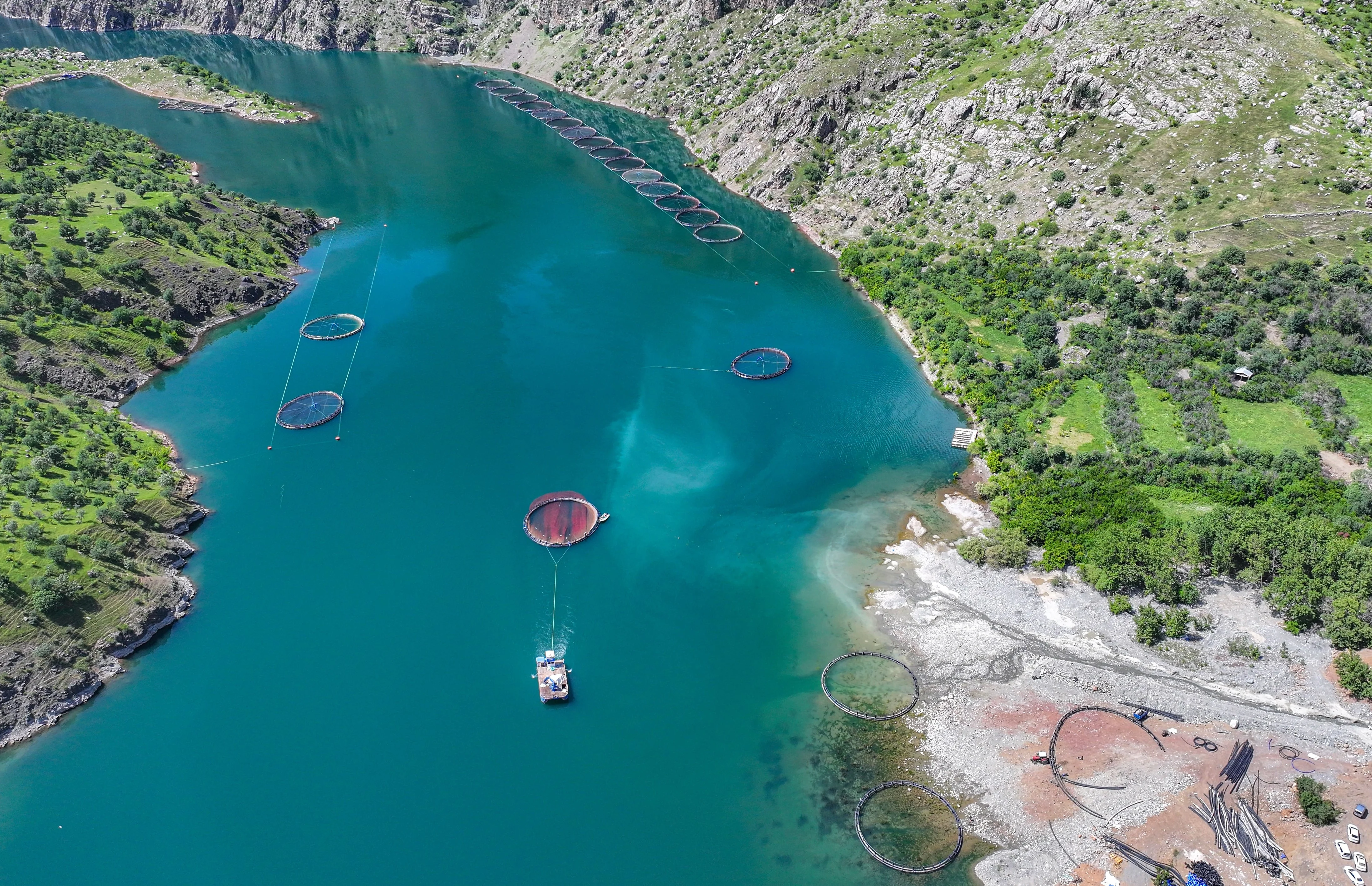 Fırat Nehri üzerinde kurulan baraj gölleri Türkiye ekonomisine katma değer sağlamaya devam ediyor. Son yatırım ise Diyarbakır’ın Çüngüş ilçesinde Atatürk Baraj Gölü kıyısında kurulan dev balık üretim tesisi oldu.