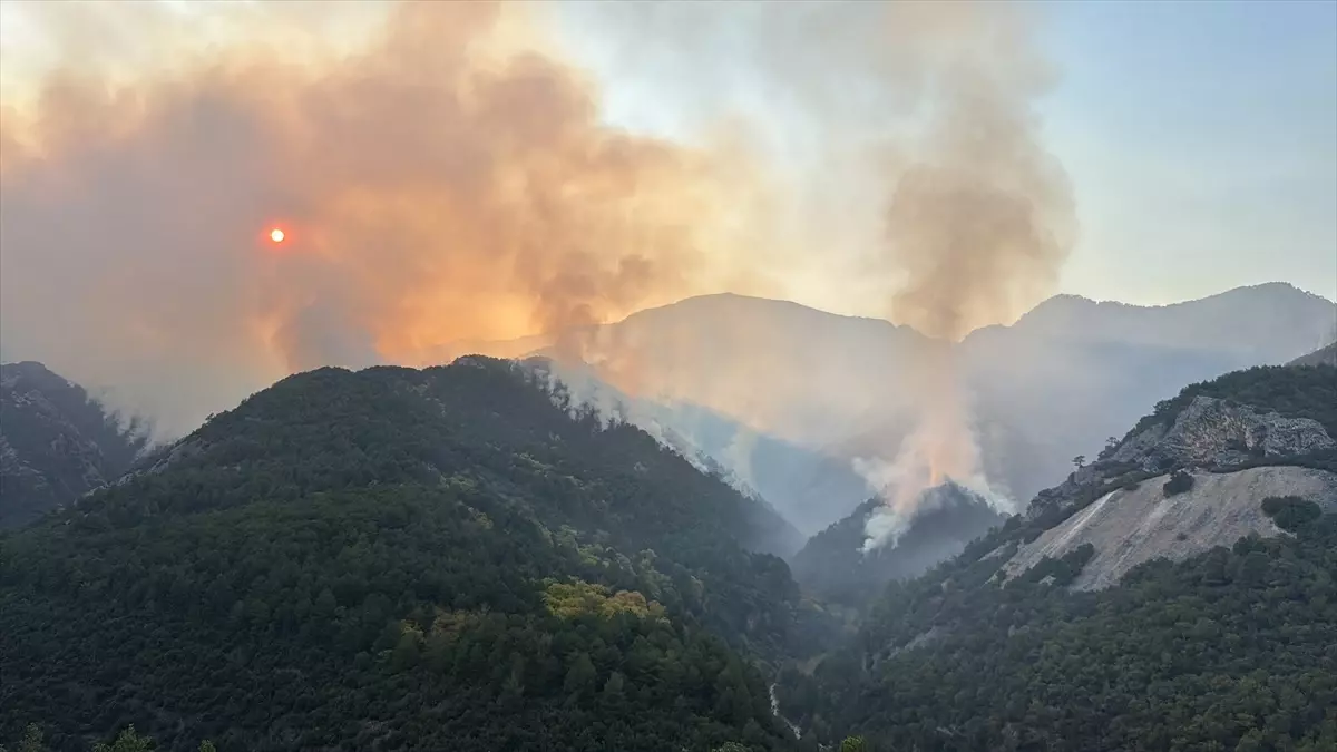 Merkezefendi'deki orman yangınına 8 helikopter, 133 araç ve 1075 personel ile müdahale sürüyor.