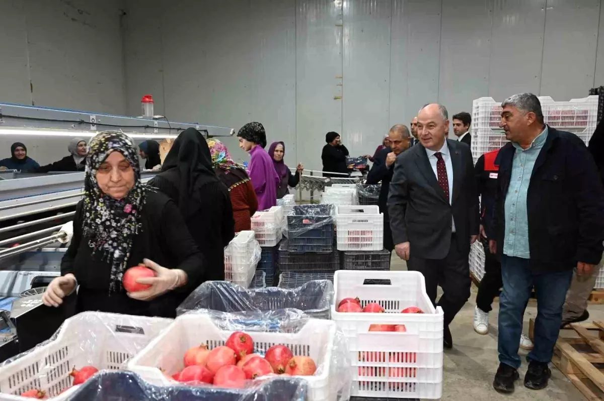 Nar üretim alanını yerinde inceleyen Vali Coşkun, üretim süreci hakkında yetkililerden bilgi alarak bugün gerçekleştirilen ihracatın ve nar hasadının bütün çiftçilerimize hayırlı ve bereketli olmasını diledi. Ziyarette üretim yöntemleri, pazarlama stratejileri ve ihracat süreçlerine dair değerlendirmeler yapıldı.