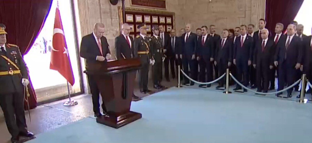 Törenler için devlet erkanı da Cumhurbaşkanı Recep Tayyip Erdoğan öncülüğünde Anıtkabir’e çıktı.