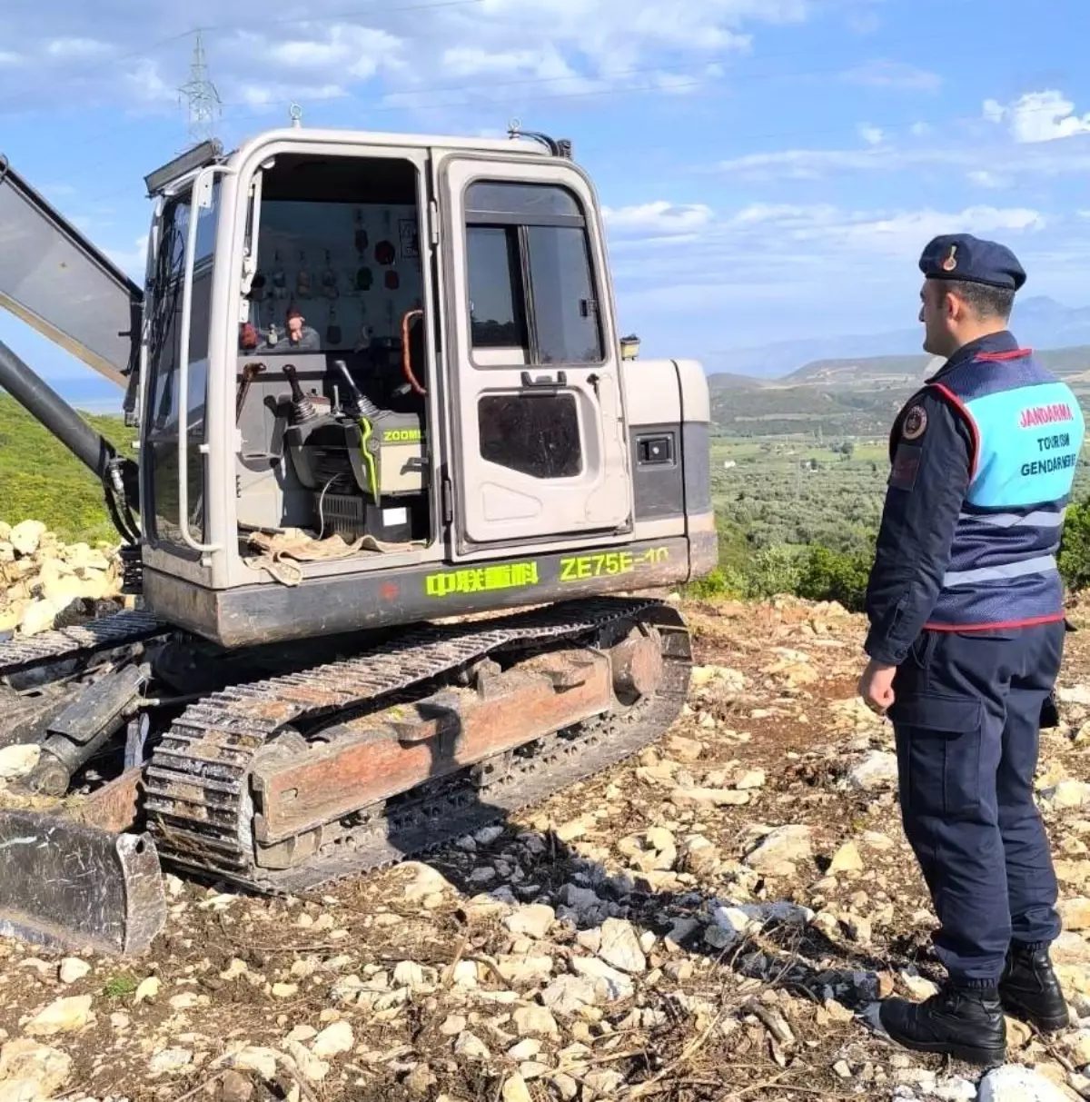 Aydın’ın Didim ilçesinde hazine arazisinde iş makinesi ile izinsiz çalışmayı jandarma engelledi.