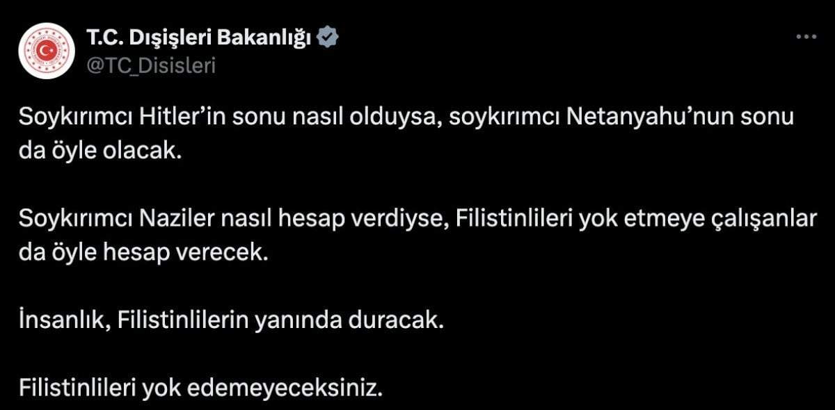Katz’ın paylaşımına Dışişleri Bakanlığı’ndan tokat gibi bir cevap geldi. Yapılan açıklamada şu ifadeler kullanıldı: