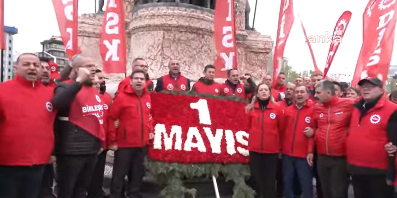 1 İşçi Sınıfının Uluslararası Birlik Mücadele ve Dayanışma Günü nedeniyle Taksim’e gelen DİSK üyeleri Taksim Anıtına çelenk bırakıyor. DİSK yöneticilerine sendikanın Genel Başkanı Arzu Çerkezoğlu eşlik ediyor.
