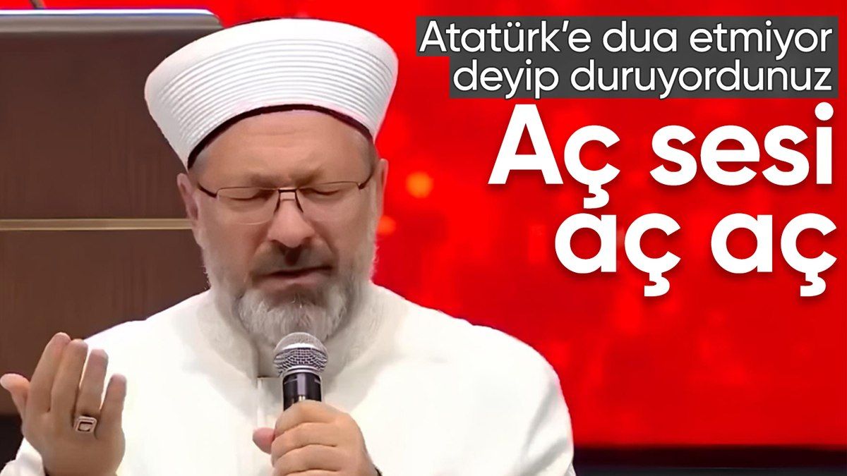 Diyanet İşleri Başkanı Ali Erbaş, programda dua ederken, “Başta Cumhuriyetimizin kurucusu Mustafa Kemal Atatürk olmak üzere bütün gazilerimizin de ruhlarını şad eyle ya Rabbi.” dedi.
