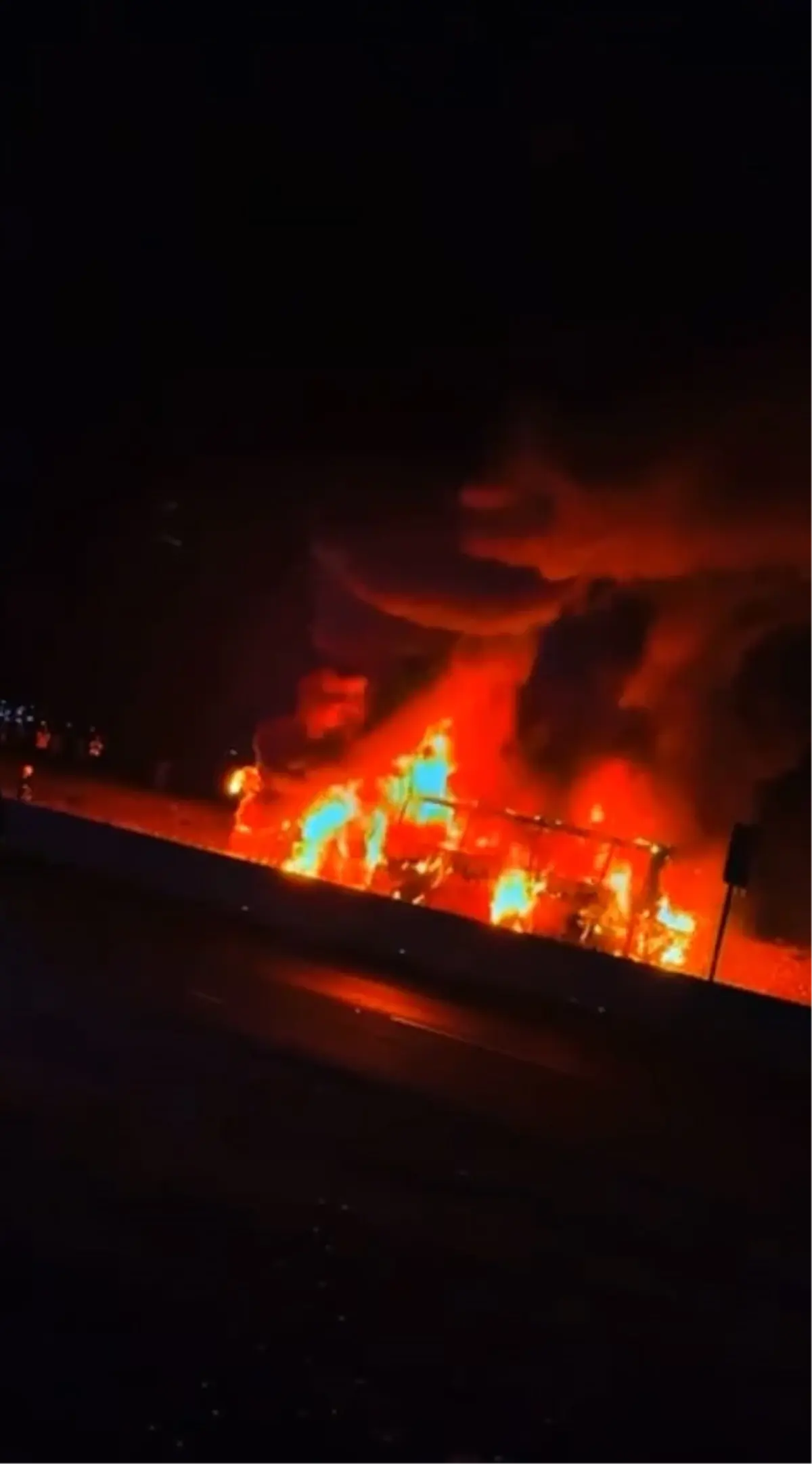 DİYARBAKIR merkezli bir firmaya ait yolcu otobüsü, Irak’ın Erbil kentinden Türkiye’ye dönerken alev aldı. O anlar, güvenlik kamerasına yansıdı.