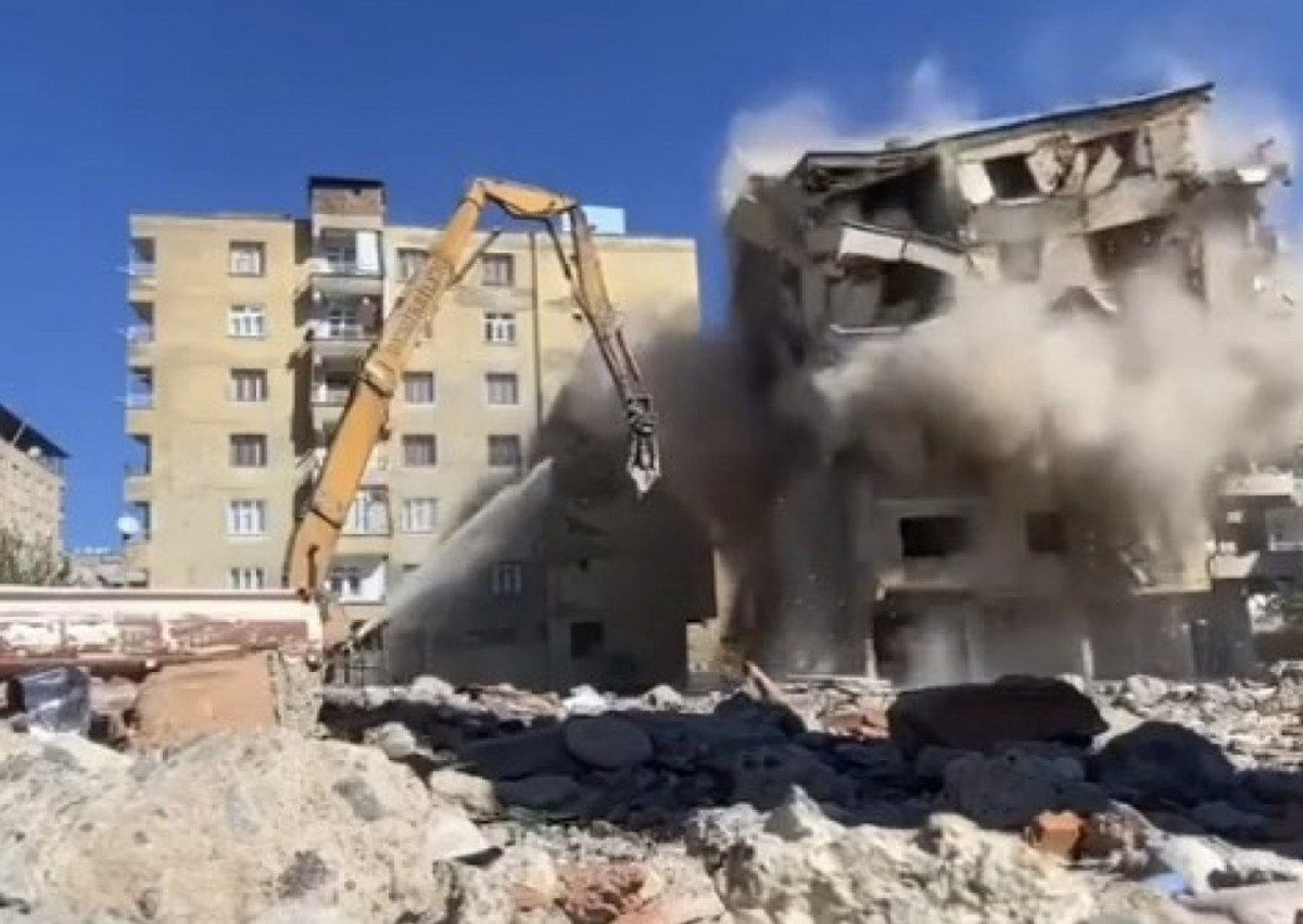 1’i boş 7 binanın yıkıldığı Diyarbakır’da, ağır hasarlı yapıların yıkım işlemleri de sürüyor.