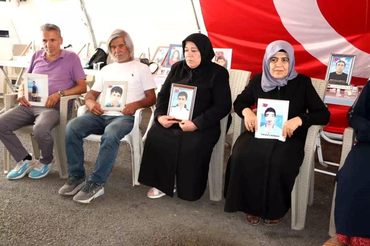 Diyarbakır’da eski HDP il binası önünde eylem yapan aileler terör örgütü PKK’nın silahları bırakmasını olumlu karşıladı.
