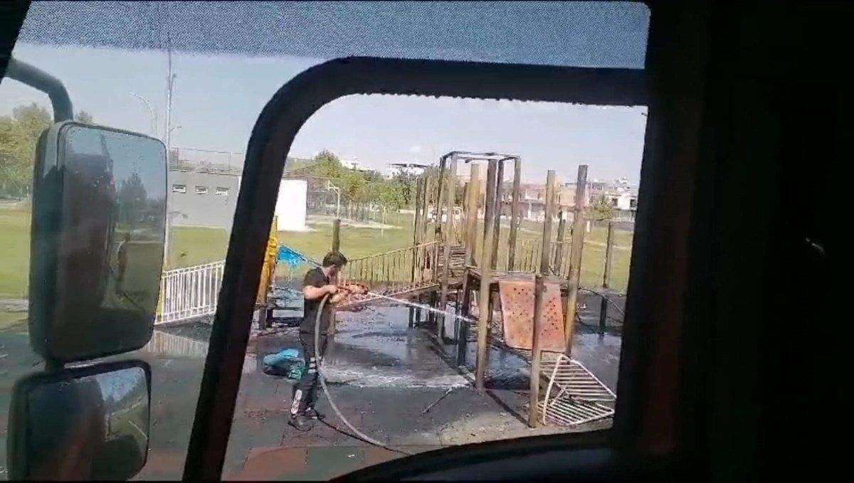 Parkta bulunan oyun grupları, öğle saatlerinde henüz bilinmeyen nedenle alev aldı.