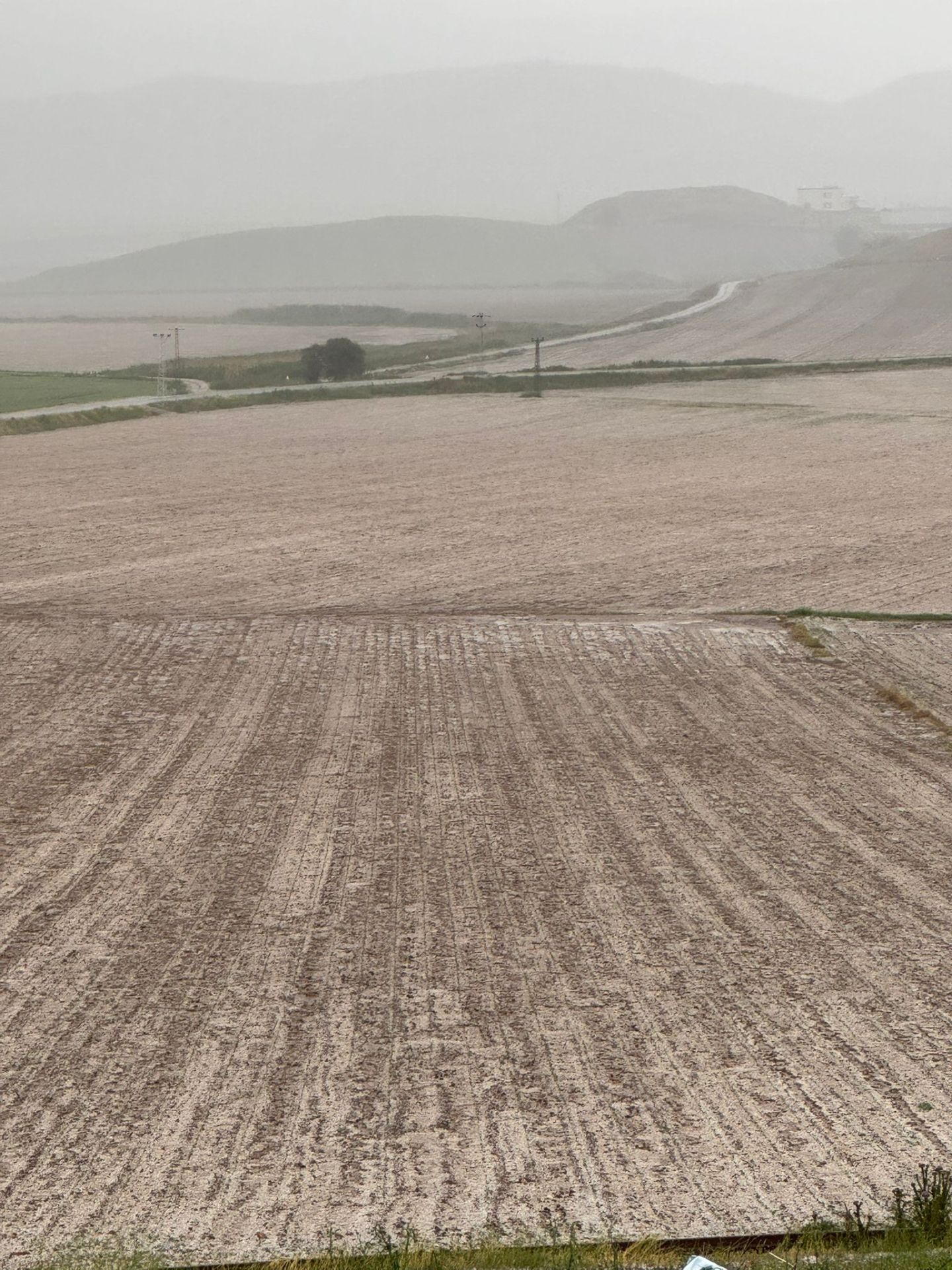 Yaklaşık 1 saat süren dolu, ilçeyi beyaz örtüyle kaplarken, tarım arazileri felç oldu.