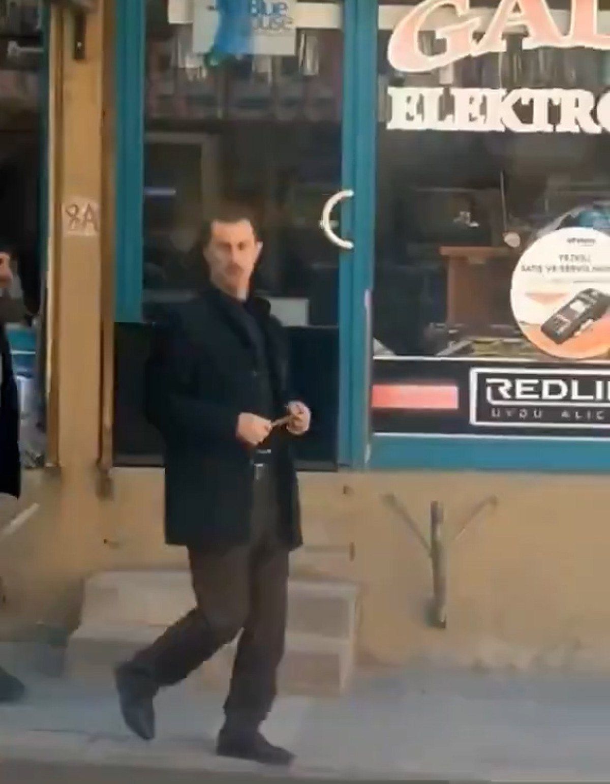 Esad’a benzeyen adamın sokakta yürüdüğü anları kayda alan bir vatandaş, ‘Esad iki tane korumasıyla birlikte telefoncudan çıktı. Evet şimdi yürüyorlar.’ dedi.