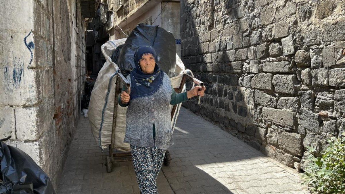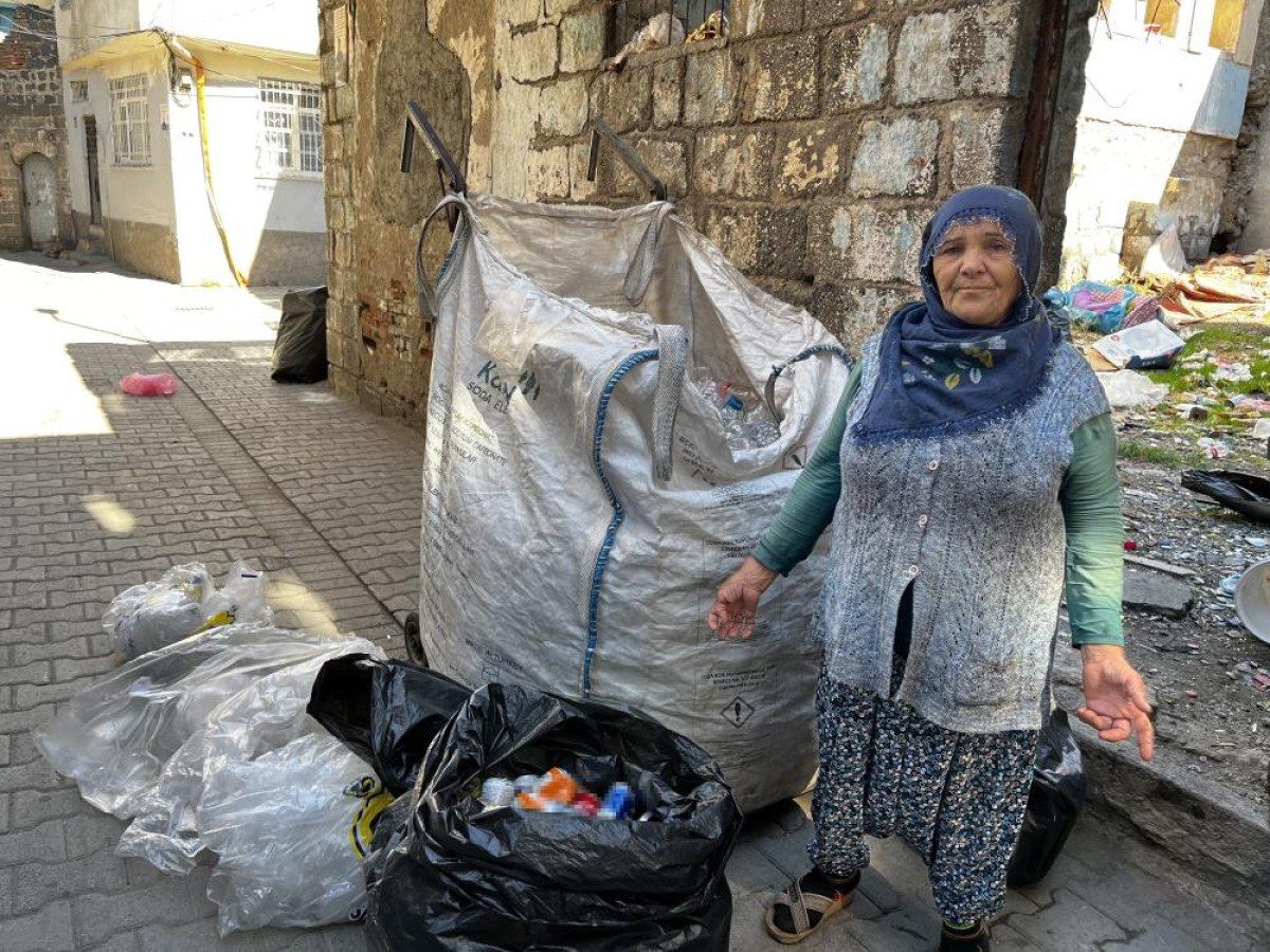 Hazal Çelik, günde 20 saat çalıştığını belirterek, “Günde 100-150 kazanıyorum, idarem olmuyor. Oğlum 25 yaşındadır bana bakmıyor. İki kızım var, onlar da evlidir. Teneke, kola şişesi, karton topluyorum.” dedi.