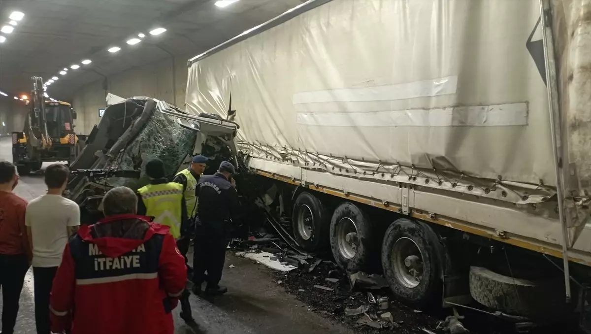 Kaza nedeniyle tünel içinde trafik bir süre tek şeritten kontrollü olarak sağlandı.