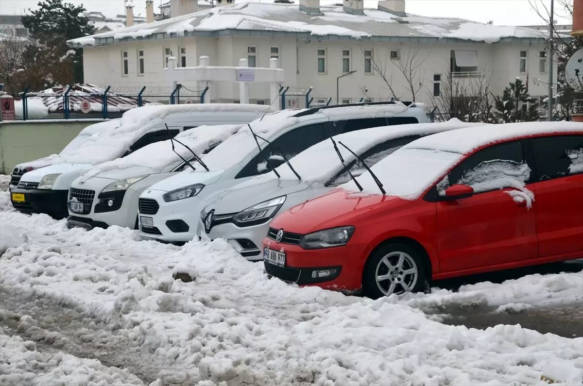 Kar yağışıyla beyaza bürünen kentte, vatandaşlar araçlarının üzerinde ve iş yerlerinin önünde biriken karı temizledi.