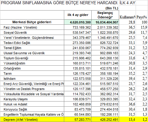 Deprem için 2025 bütçesinde 426 milyar TL ayrılmasına karşın, 4 ayda 57 milyar TL harcandı. Deprem harcamalarına ayrılan bütçe, toplam bütçe içerisinde %1,2 gibi düşük bir oran oldu.