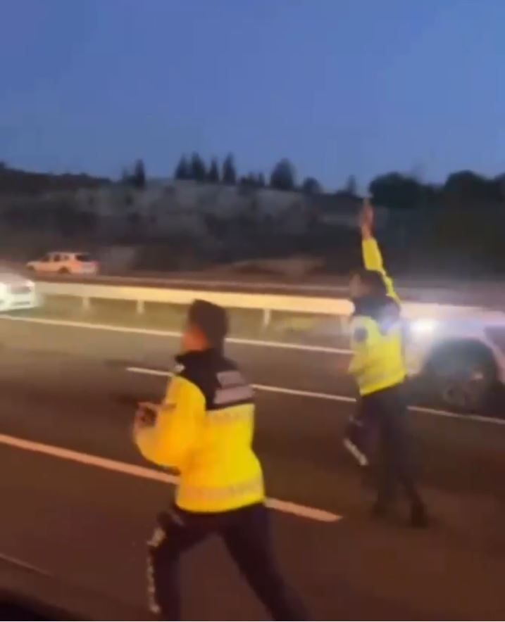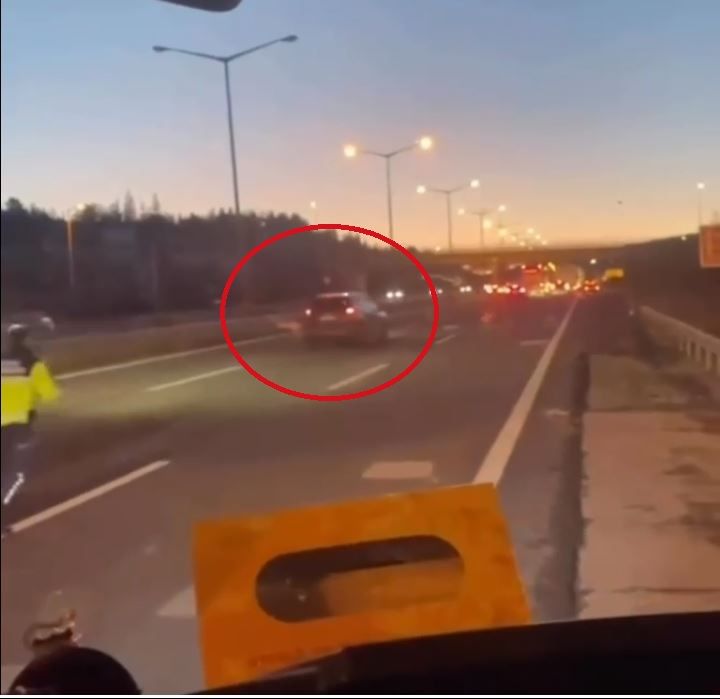 Anadolu Otoyolu’nda jandarma ekiplerinin “dur” ihtarına uymayan ve aracıyla görevlilerin üzerine süren bir sürücü, yaşanan kovalamacanın ardından yakalanarak tutuklandı. Şüphelinin kaçış anı ise çevredeki vatandaşlar tarafından cep telefonu kamerasıyla kaydedildi.