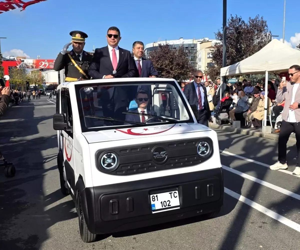 DÜZCE (İHA) – Düzce’de Cumhuriyet Bayramı etkinliklerinde bir ilk yaşandı. Düzce Valisi Selçuk Aslan, halkın bayramını kentte faaliyet gösteren bir firma tarafından üretilen yüzde 100 yerli elektrikli aracın üzerinden kutladı.