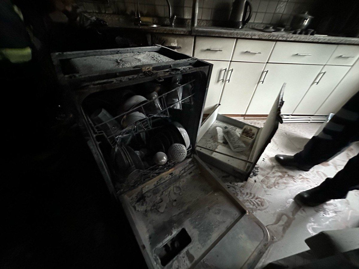 Düzce’nin Gölyaka ilçesinde evdeki bulaşık makinesinden çıkan yangında hasar oluştu ve mutfak tamamen yandı.