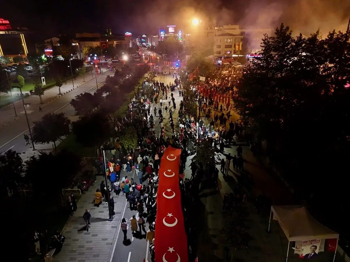 Yaklaşık bin kişinin katılımıyla gerçekleşen kortejde, vatandaşlar ellerinde meşaleler ve Türk bayraklarıyla Anıtpark Meydan’ına yürüdü.