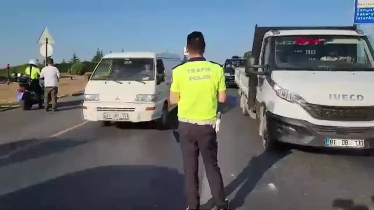 DÜZCE’de, denetime kasksız yakalanan, “Bana ceza yazmayın. Alo, desem 10 tane kask gelir” diyerek polislerle tartışan sürücüye 691 TL ceza kesildi. Kucağında küçük kızı uyurken tek eliyle motosiklet kullanan bir sürücü ise uyarıldı.