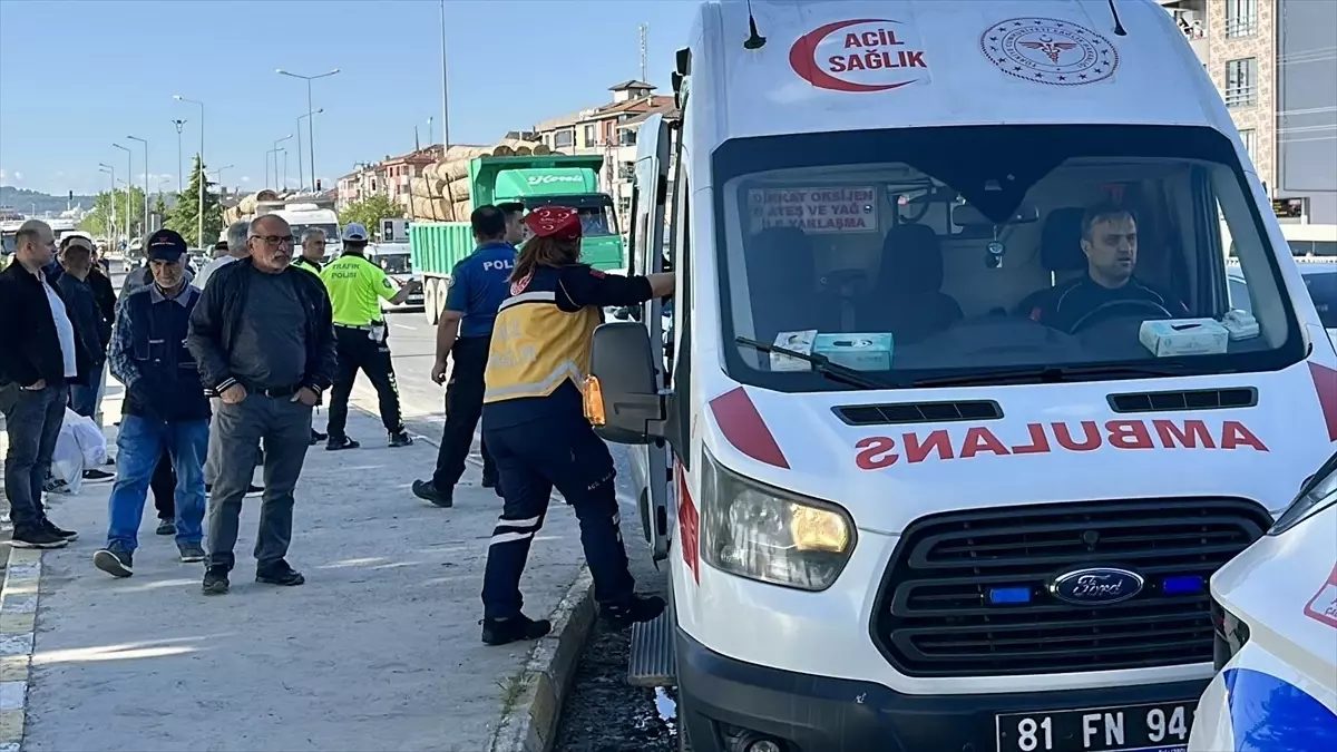 Düzce’de motosikletin yayalara çarpması sonucu 1’i çocuk 3 kişi yaralandı.