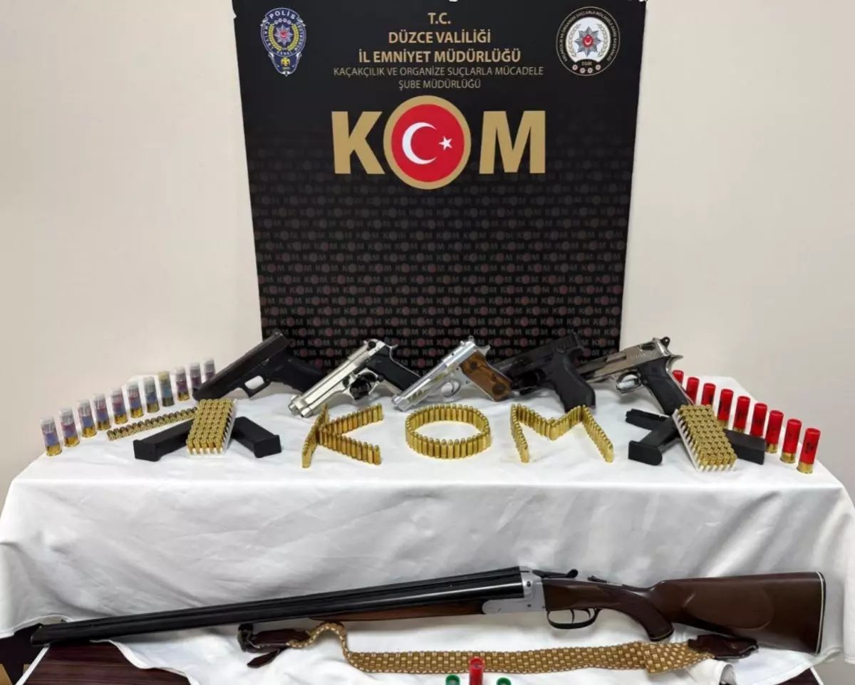 Düzce(İHA) – Düzce Cumhuriyet Başsavcılığı koordinesinde KOM Şube Müdürlüğü ekiplerince ruhsatsız silahlarla çeşitli yerlerde ateş ettiği belirlenen şahıslara yönelik operasyon düzenlendi. Çok sayıda ruhsatsız silahın ele geçirildiği operasyonlarda 4 kişi yakalanırken 2 kişi adli makamlara çıkartılmak üzere gözaltına alındı.