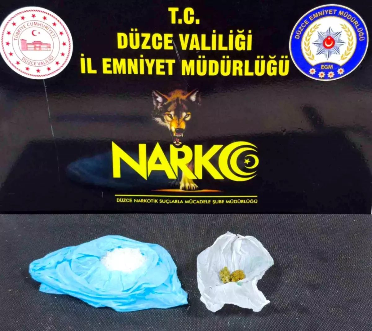 Düzce Cumhuriyet Başsavcılığı il genelinde uyuşturucuyla mücadele konusunda kararlılıkla çalışmalarını sürdürüyor. Bu çerçevede Düzce Merkez Nusrettin Mahallesi’nde Düzce İl Emniyet Müdürlüğü Asayiş şubesi ekiplerinin yaptığı çalışmalarda B.Ç isimli şahıs yakalandı. Şahsın üzerinde yapılan aramada 74 gram sentetik kannabinoid, 2 gram A/M-sentetik kannabinoid hammaddesi, 3 gram metamfetamin ele geçirildi.