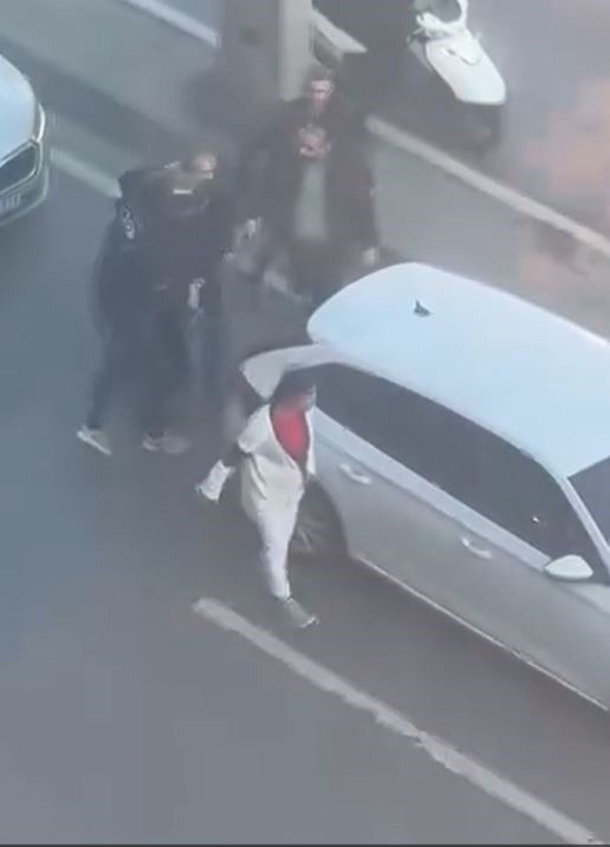 Olay yerinden ilk uzaklaşan aracın camından bir kadının uzanarak tehdit savurduğu gözlendi.