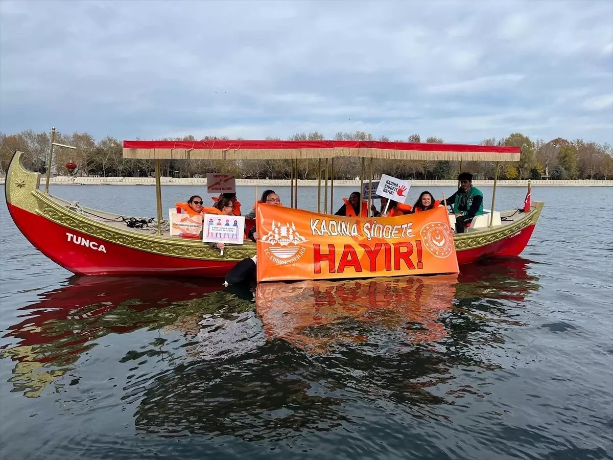Muhtarlar Meriç Nehri’nde kancabaş tipi kayıkla gezi yaptığı sırada da “Kadına Şiddete Hayır” yazılı pankart açtı.