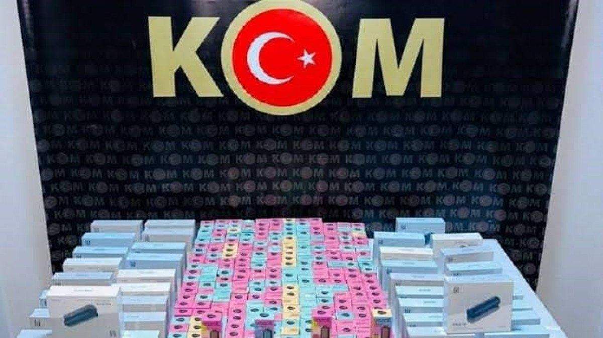 Cipte yapılan aramada, gümrük kaçağı olduğu belirlenen 530 boş elektronik sigara kutusu, 2 bin 242 elektronik sigara kiti, 2 bin 790 elektronik sigara başlığı, 1275 elektronik sigara ateşleyicisi, 130 likit haznesi ve 18 sigara likidi bulundu.