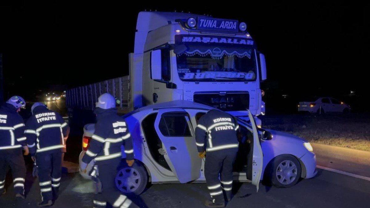 Edirne’de Semih B. idaresindeki 22 EF 823 plakalı otomobil ile Ramazan B. hakimiyetindeki ham inşaat demiri yüklü tır çarpıştı. Diğer sürücülerin ihbarı üzerine olay yerine sağlık, jandarma, polis ve itfaiye ekipleri sevk edildi.