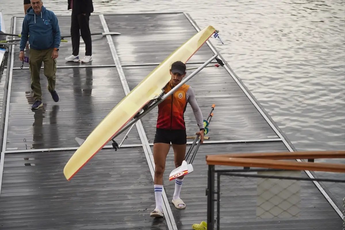 Türkiye Kürek Federasyonu tarafından düzenlenen organizasyonun son gün yarışları öncesi sporcular ısındı.