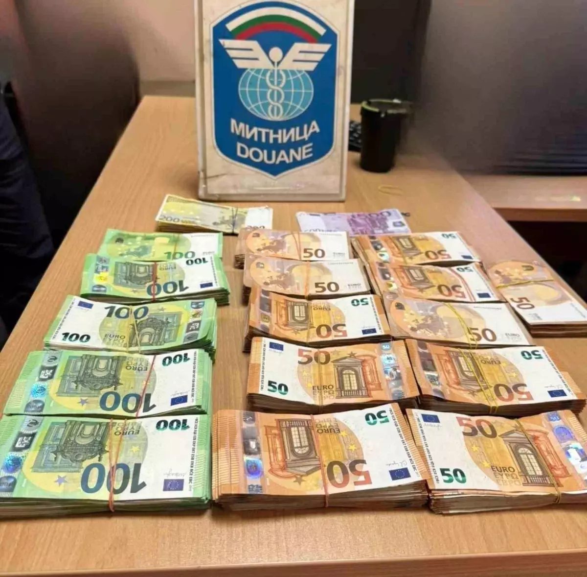 Hollanda’dan Bulgaristan üzerinden Türkiye’ye gitmek üzere Kaptan Andreevo gümrüğüne Türk plakalı bir tır, detaylı bir gümrük denetimi için seçildi ve bu denetim sırasında duvar döşemesinin bir kısmı söküldükten sonra sürücü kapısının üstündeki fabrika boşluğunda 100 bin euro banknotları bulundu.