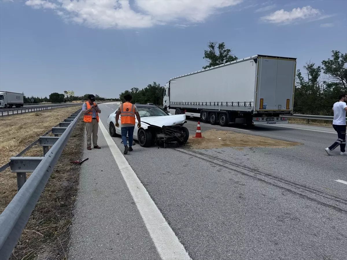 R.E’nin kullandığı 35 BKN 685 plakalı otomobil, Avrupa Otoyolu Köşen köyü mevkisi yakınlarında, M.K. idaresindeki 34 KKR 594 plakalı SUV araçla çarpıştı. Savrulan otomobil, bariyerlere çarparak durabildi.