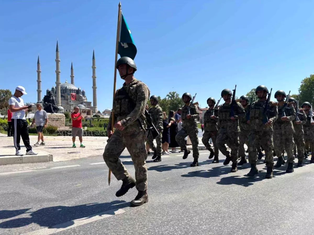 Edirne’de 30 Ağustos Zafer Bayramı, Mehmetçiğin marşlarla yaptığı görkemli geçişi, askeri araçların gücü ve güvenlik güçlerinin gurur dolu adımlarıyla coşkuya kutlandı.