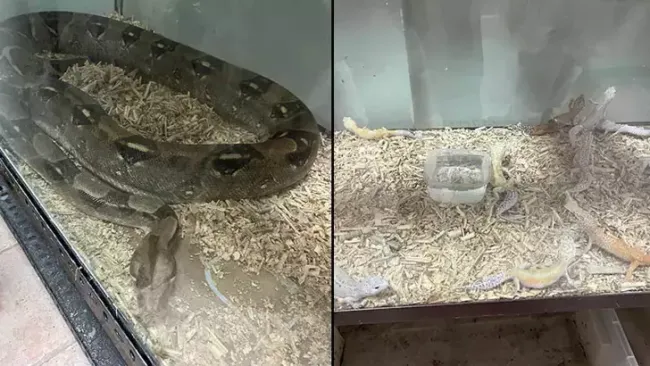 Yıldırım’daki adreste yapılan aramada, 3 metre uzunluğunda, yaklaşık 10-11 yaşlarında yetişkin boa yılanı ile 7 hognose (domuz burunlu) cinsi yılan yavrusu ele geçirildi.