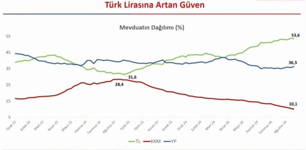 Türk lirasına olan güven son bir yılda ciddi bir şekilde artmıştır. TL mevduatlarının toplam mevduatlar arasındaki payı önemli derecede artmıştır. Bu artış TL’ye olan güvenin arttığını ve vatandaşların yatırımlarını TL’ye indekslediğini görüyoruz.