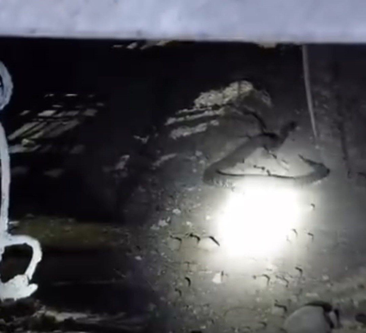 Bir kişi, zehirli yılanı gece saatlerinde traktörün altında fark etmesi sonrası üzerine el feneri tutarak o anları kayda aldı.