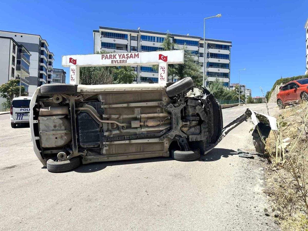 Elazığ’da sürücüsünün kontrolünden çıkan otomobil yan yattı. Sürücü emniyet kemeri sayesinde kazadan yara almadan kurtuldu.
