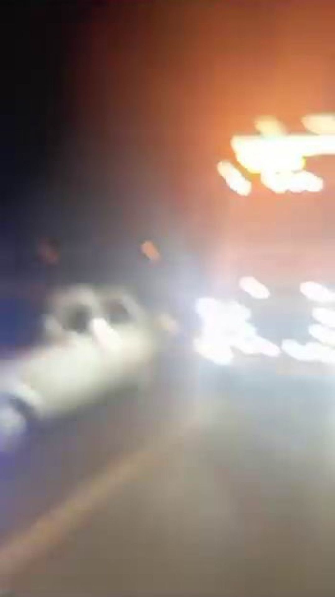 Çevre yolunda düğün sonrası konvoya katılan araçlardan birinden sarkan şahıs, cep telefonu ile konvoyu görüntülemeye çalıştı.